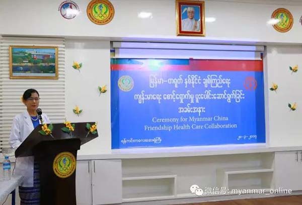 仰光仰京儿童医院院长敏敏凯博士 3月28日在中华慈善总会“一带一路 胞波情 先心病儿童救助行动走进缅甸“启动仪式上讲话