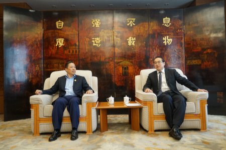 国侨办副主任郭军与黄荣盛交流。中新社记者 付强 摄