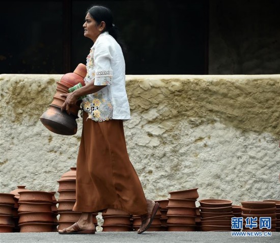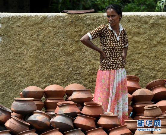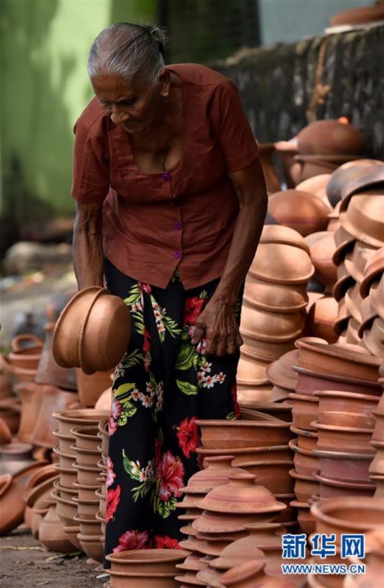 4月12日,在斯里兰卡科伦坡,一名小贩售卖陶盆。每年4月13日及14日是斯里兰卡一年一度僧伽罗和泰米尔传统新年。 新华社/法新