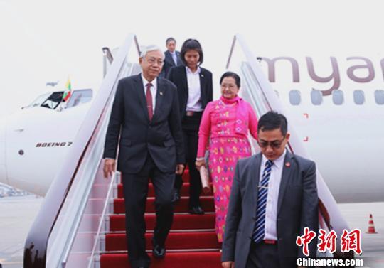 4月6日,缅甸联邦共和国总统廷觉乘专机抵达成都双流国际机场。 中新网记者 付勇胜 摄