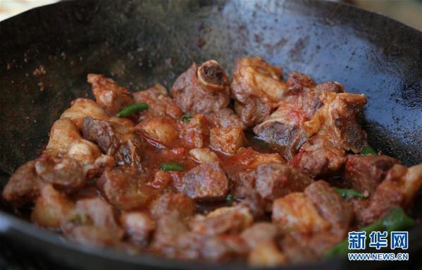 这是4月2日在巴基斯坦拉瓦尔品第的一条美食街上拍摄的刚出锅的“铁锅羊肉”。“铁锅羊肉”通常与馕一起食用,是巴基斯坦人餐桌上常见的一道菜。巴基斯坦菜肴大多采用炖、炸、烤等烹饪方法,味道香辣,肉类以牛羊肉和鸡肉为主,常见蔬菜则有洋葱、青椒、西红柿、白菜、茄子、生菜、菠菜、豆类等。新华社记者 艾哈迈德·卡迈勒 摄