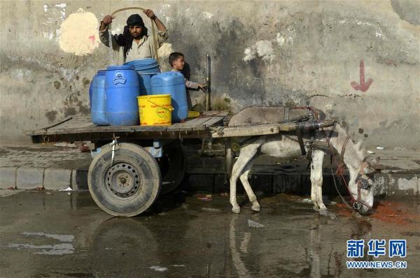 4月19日,在巴基斯坦拉合尔,一名男子从路边的水龙头里取水。 巴基斯坦受高温侵袭,许多地区气温超过45摄氏度。新华社/法新