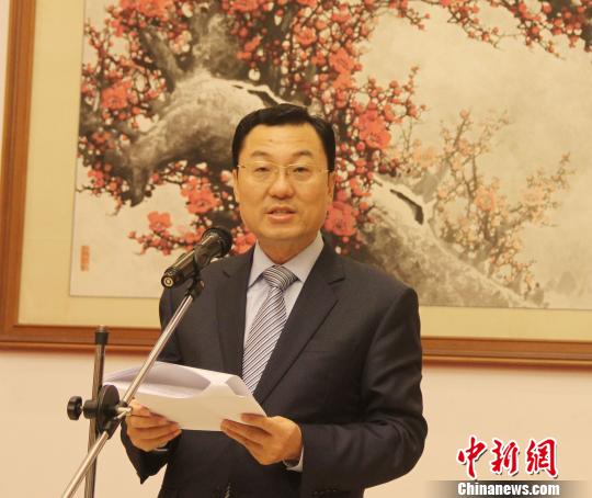 4月20日晚,中国驻印尼大使馆举行招待会,欢迎“中印尼青年互访交流团”成员到印尼开展游学交流活动。图为中国驻印尼大使谢锋致辞。中新社记者 林永传 摄