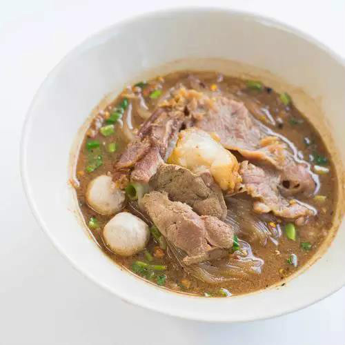 泰国的米粉(Kuai Tieo)和中国南方的米粉、米线有些不同,泰国的米粉分量较小,但是所放的种类多种多样,有鸡肉、猪肉、牛肉、海鲜、内脏等,干捞粉和湿粉的味道也大相径庭,价格一般在30-40铢不等,在泰国中部还有一种船粉,分量更小,价格一般在10-15铢左右,非常有特色。