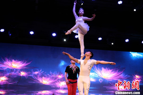 中国艺术家表演杂技《肩上芭蕾》。 中新社记者 王国安 摄