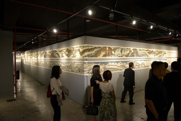 画展展出的作品包括钟正山创作的《雄鸡一鸣天下光明》、《郑和官邸图》、《南洋渔村》等多幅水墨作品,以及王新循创作的百米长卷《郑和下西洋》、《海上丝绸路》、《长城颂》等,同时还展出了八件以“郑和下西洋”为创作题材的沉香木雕作品。