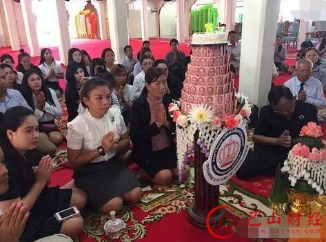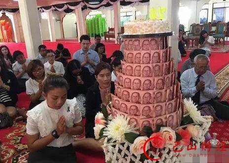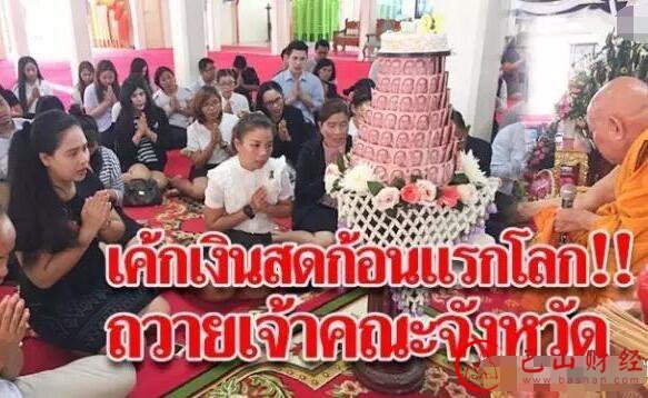 泰国高僧生日 大学师生捐10万现金堆成蛋糕