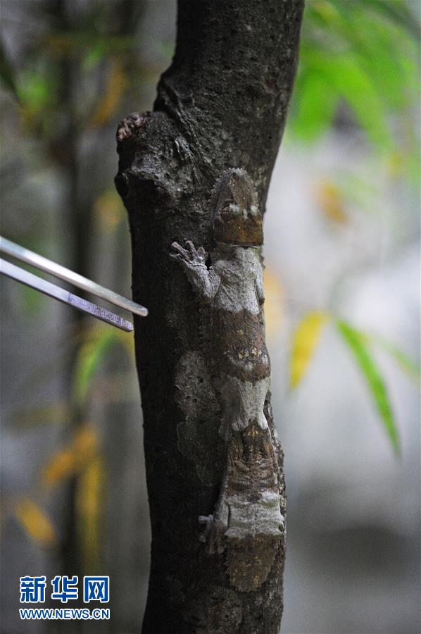 这是5月24日在新加坡动物园的爬行动物展区拍摄的一只叶尾壁虎。 新加坡动物园的爬行动物展区整修后将从5月27日起重新对公众开放。新华社发(邓智炜摄)