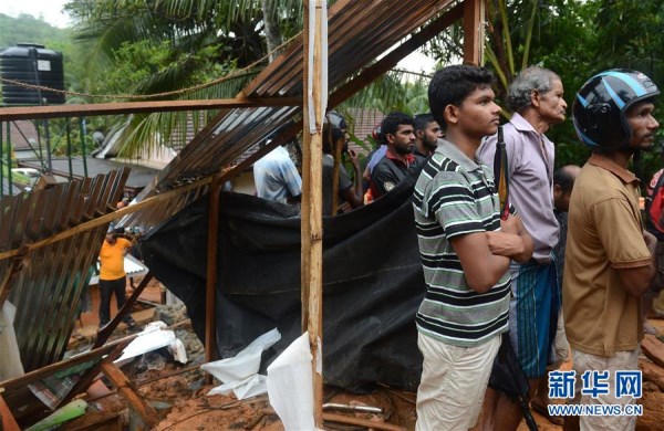 5月26日,在斯里兰卡卡卢特勒的一个村庄,村民们聚集在泥石流救灾现场。斯里兰卡灾难管理中心26日发布声明说,斯中部及南部地区暴雨引发的洪水和山体滑坡已造成91人死亡,另有100人失踪,约52万人受灾。新华社/法新