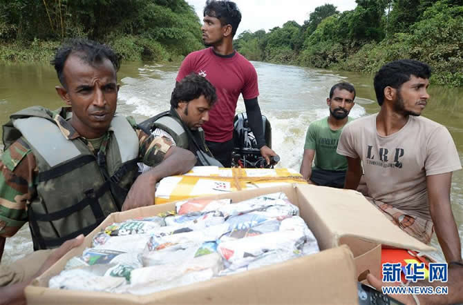 5月30日,在斯里兰卡卡卢特勒,斯军方准备向受灾居民分发食物。斯里兰卡灾难管理中心30日发布声明说,暴雨引发的洪水和山体滑坡已造成193人死亡、94人失踪,数十万家庭受灾。 新华社/法新