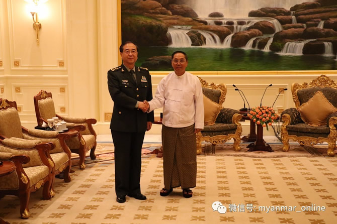 (缅甸副总统吴敏瑞与中央军委委员、军委联合参谋部参谋长房峰辉举行会见)