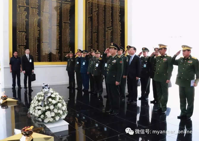 (到访的中央军委委员、军委联合参谋部参谋长房峰辉一行在缅甸首都内比都向烈士纪念碑献花 )