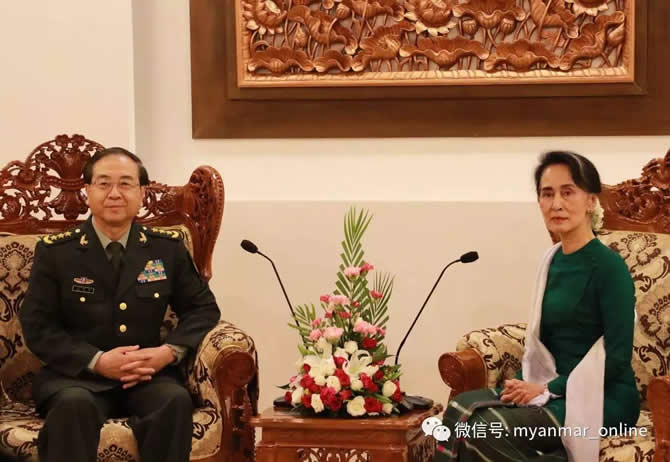 缅甸国务资政昂山素季6月1日在首都内比都会见了来访的中央军委委员、军委联合参谋部参谋长房峰辉。