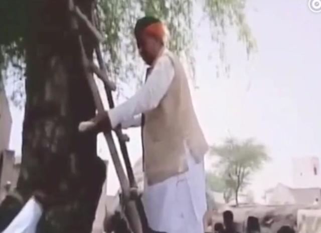 手机信号太弱! 62岁印度部长被逼爬上树打电话
