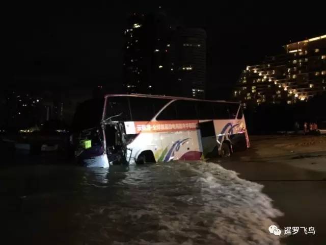 泰国载34名中国游客大巴冲进海里 部分游客受轻伤