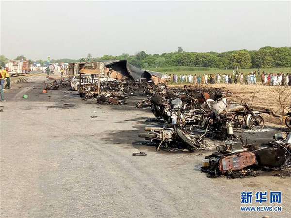 巴基斯坦一油罐车侧翻引发大火已致120人死亡