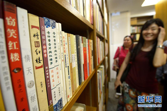 7月1日,在马来西亚吉隆坡,人们在《红楼梦》研究资料中心参观。