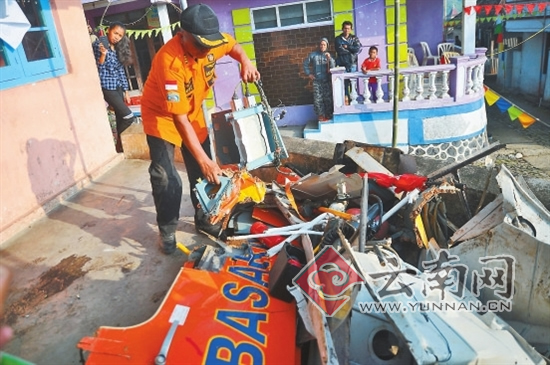 印度尼西亚中爪哇省警方2日说,印尼国家搜救中心一架载有9人的直升机当天下午在中爪哇省山区坠毁,至少3人死亡。这架前往中爪哇省西勒里火山灾区协助撤离灾民的直升机当天16时左右与地面失去联系,随后被发现在中爪哇省淡满光县山区坠毁。图为救援人员3日在处理直升机残骸。