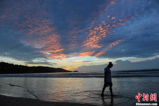 普吉岛被誉为泰国的“珍珠”,这里拥有迷人的风光和丰富的旅游资源,每年都吸引众多游客来此休闲观光。图为一名游客从海滩上走过。中新网 洪坚鹏 摄