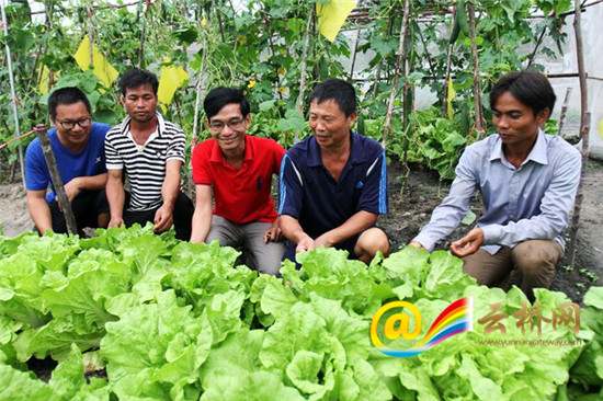 来自广西的农业专家蒋乃芬(右二)、郑超喜(左一)向村民传授种植技术