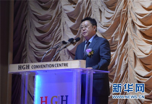 世界华侨华人社团联合总会秘书长汪伟在开幕式上致辞。 新华网记者 王大玮 摄