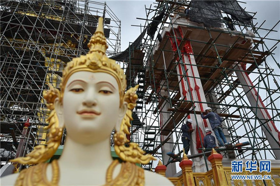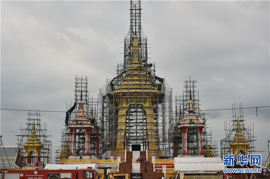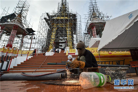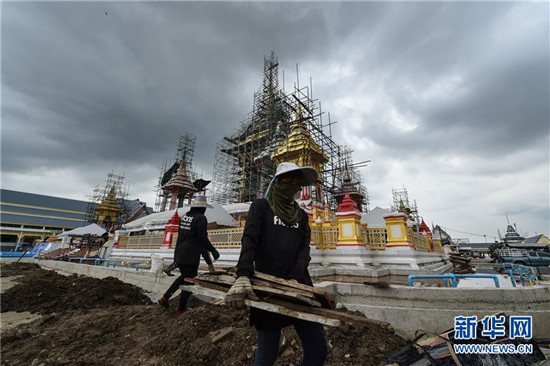 普密蓬国王遗体火化台施工现场。新华社记者 李芒茫 摄