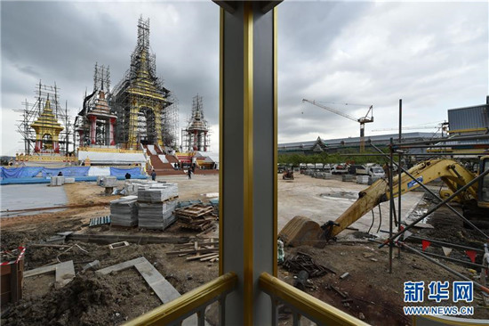 8月8日在泰国曼谷拍摄的普密蓬国王遗体火化台施工现场。新华社记者 李芒茫 摄