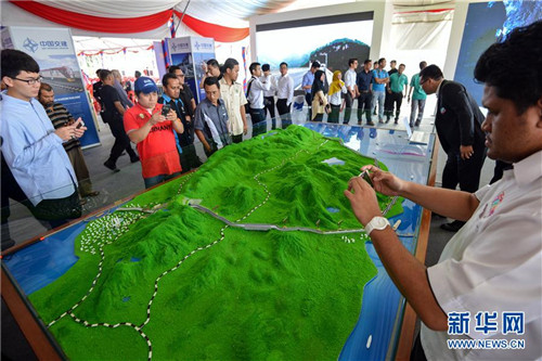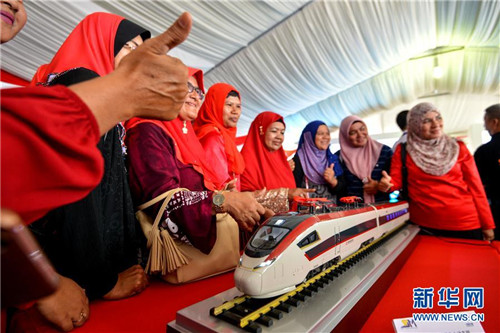 8月9日,在马来西亚关丹,人们观看马来西亚东海岸铁路项目模型。中国和马来西亚两国合作建设的马来西亚东海岸铁路项目9日在关丹正式开工。新华社记者 张纹综 摄