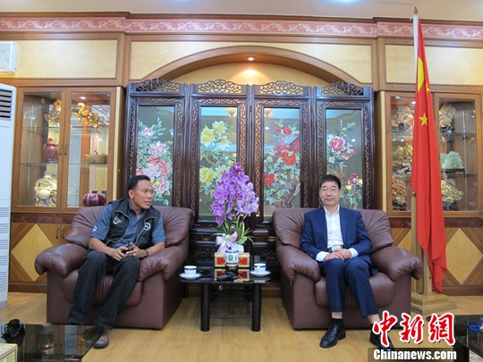 中国驻宋卡总领事周海成8月11日会见泰国国家旅游局合艾办事处处长帕努·瓦拉密。帕努·瓦拉密向中国驻宋卡总领馆提出,希望对宋卡及合艾地区直接从事旅游行业的从业者进行职业汉语培训,以便更好地服务中国游客。中新社记者 陈静 摄