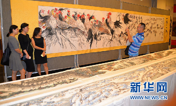 谢忝宋创作的两幅水墨抽象作品分别以空间转换和色彩对比阐述了辩证的人生哲理,发人深思。而王新循的百米长卷水墨作品以长城为题材,气势恢宏,让当地艺术爱好者叹为观止。