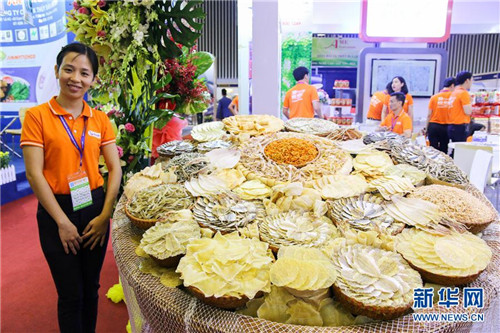 8月29日,在越南胡志明市,一家越南企业的员工介绍产品。新华社发 黄氏香 摄