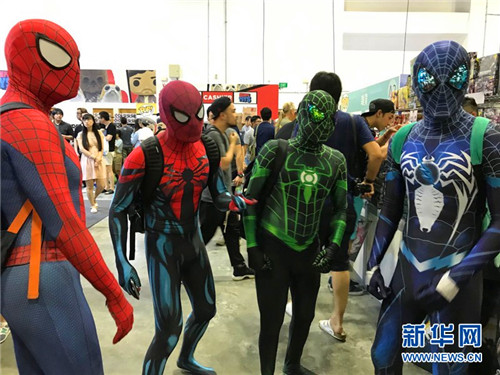 9月10日,“蜘蛛侠”组团现身会展。第10届新加坡玩具电玩与漫画展9月9日至10日在新加坡滨海湾金沙会展中心举办。