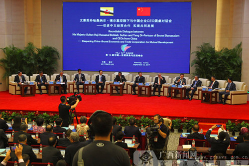 文莱国家领导人与中国企业CEO圆桌对话会在南宁举办,对话会以“促进中文经贸合作 实现共同发展”为主题。中文双方政府官员及工商界人士共约200人参会。广西新闻网记者 邓昶 摄