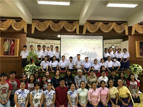 中国师生在泰国北部南奔府与当地中学生进行交流。