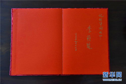 李显龙为新华网题词“祝新华网成功”。 新华网记者 王应耀 摄