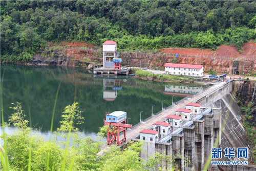 这是8月16日在柬埔寨戈公省拍摄的中国华电集团公司投资建设的额勒赛下游水电站的大坝。新华社记者 毛鹏飞 摄
