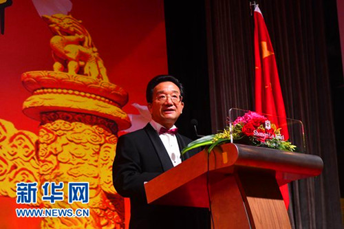 中国驻马来西亚大使黄惠康在招待会上致辞。张纹综 摄