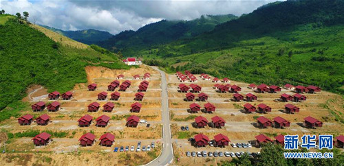 这是9月27日在老挝琅勃拉邦省巴乌县航拍的拉塔亥移民新村。中国电力建设股份有限公司投资开发的老挝南欧江项目二期一级水电站移民新村交接仪式27日正式举行。 新华社发(刘艾伦摄)