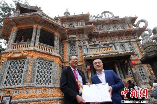 马来西亚沙巴亚庇同乡会馆联合会“一带一路”访华考察团在瓷房子前合影。张道正 摄