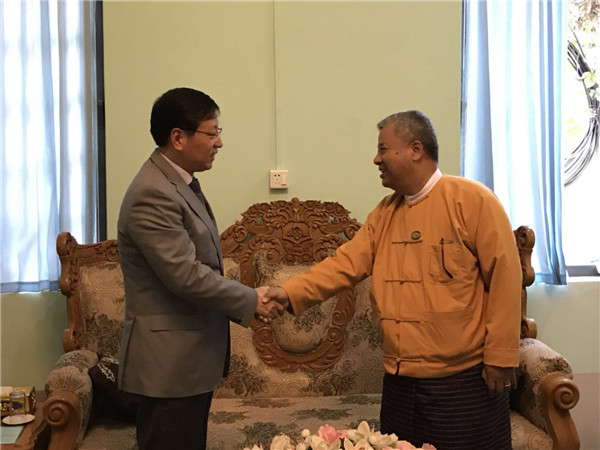 近日,中国驻缅甸大使洪亮访问掸邦。洪亮大使在掸邦首府东枝会见了掸邦首席部长林图博士,双方就加强中国与掸邦各领域合作、缅甸和平进程等交换了意见。