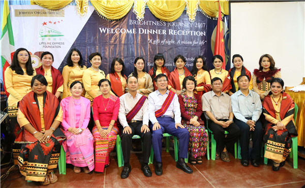洪大使并在东枝出席了缅方为“2017健康快车缅甸光明行”中国医疗队举行的欢迎晚宴。掸邦首席部长林图博士夫人杜楠瑞敏、缅甸东部军区司令温敏通少将、掸邦政府秘书长吴梭梭佐、缅甸雷尊都基金会主席杜妙蒂达,以及掸邦政府各部门代表,勃欧族、德努族、茵族等少数民族代表,掸邦妇女联合会代表,华人华侨代表等150余人出席晚宴。