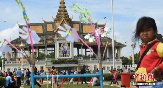 11月2日,为期三天柬埔寨“送水节”在金边皇宫对面的的湄公河上拉开序幕,约300万人次的国内外游客狂欢金边。图为金边皇宫广场摆摊的小姑娘。 中新社记者 黄耀辉 摄