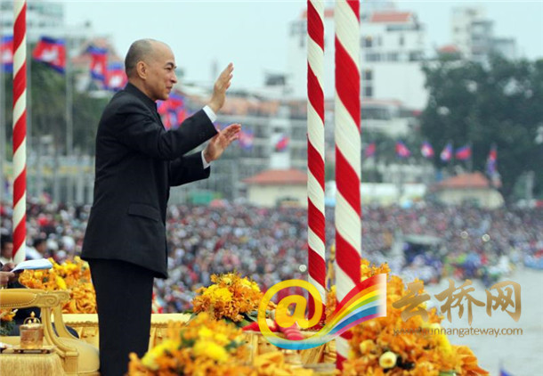 11月2日至4日,湄公河边彩旗飘舞、柬埔寨王宫灯火璀璨,2017年送水节国家庆典活动在王宫广场举办。柬埔寨国王诺罗敦·西哈莫尼、政府首相洪森以及多位副首相、国务部长、政府官员和各国驻柬使节、贵宾参加庆典。