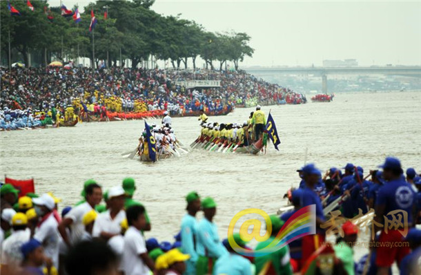 每年佛历12月15日前后,是柬埔寨重大传统节日之一:送水节,它标志着一年中雨季的结束和丰收季节的到来。每年的雨季,高涨的湄公河水倒流进入洞里萨湖,到了11月,进入旱季,湄公河水位下降,洞里萨湖水回流湄公河,最后注入南海。此时湖中鱼虾肥美,河岸边散发着柬埔寨稻米的阵阵清香,中南半岛的鱼米之乡迎来了收获季节。为感谢河水的馈赠,把带来丰收的河水送归大海,柬埔寨人民自古就有了送水节这一传统习俗。送水节期间,柬埔寨全国都会举行“划龙舟、放水灯、吃扁米、拜月”等活动。