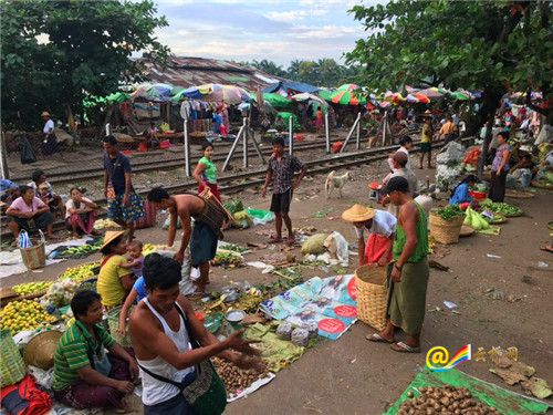 车速并不快,间隔很短就有站台,人们上上下下,十分热闹。直到郊区,车上人才慢慢少下来。此时就可以享受静谧的田园时光了。在晃动的小车厢里,听着火车咣当咣当,远处的农田里飞过几只不知名的鸟儿,牛也自由自在吃着草。农田周边集聚着一些人家,是最普通的缅甸农村房屋,用棕榈或者茅草、木头搭建。缅甸大量种植空心菜,郊区的水塘里绿油油一片,人们站在齐腰的水里,全身“武装”,一茬一茬收割着。再看车厢里的人,有的正进入梦乡,有的还在读报,也有人是家里做好了饭等自己,他在电话这边说:“还有两个站,就回来。”然后亲切地问:“孩子乖不乖?”……