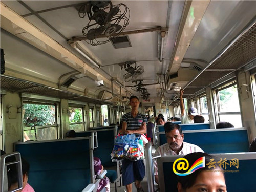 终于在二十分钟后看到了我要乘坐的小火车,上车,捡个靠窗的位置坐下。此时火车还在城内转悠,可以看看缅甸普通民居。卖花生的、卖水果的、卖槟榔的,相继在车厢里来回溜达,这个叫:“橘子五百四个,那个叫好吃的煮花生……”缅甸普通百姓生活清苦,五百缅币的葡萄需要想一想才掏钱,卖水果的小哥走出去几步又被叫了回来。