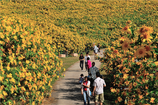 花海正吸引不少泰国游人前来赏景、游玩。照片看得不过瘾?!那赶紧去实地看一看吧,肿柄菊花期已快接近尾期,错过可要再等一年哦!