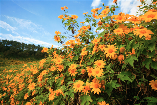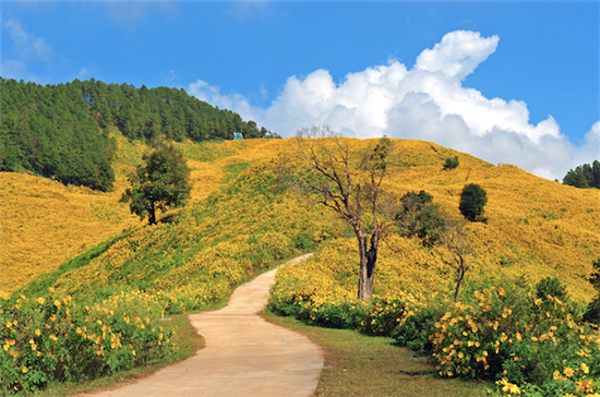 Supanee喜欢春天的花,夏天的树,秋天的落叶,冬天的暖阳。但开在湄宏顺府Khun Yuam District的墨西哥向日葵算得上是我的最爱了。墨西哥向日葵又叫肿柄菊,因花型与向日葵相似得名,花色偏橙色。