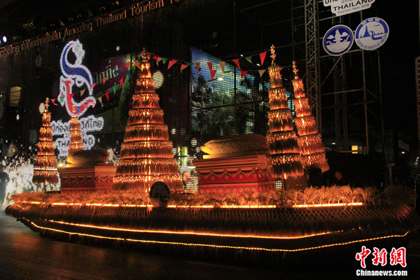当地时间15日晚,“神奇泰国”花车巡游活动在曼谷市中心举行。泰国副总理塔纳萨宣布,泰国2018旅游年正式启动。