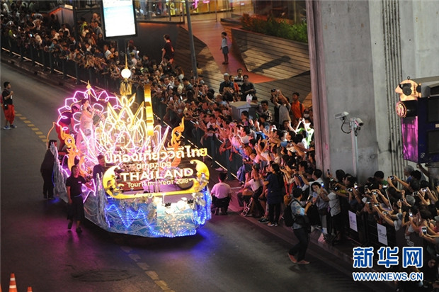 泰国政府11月15日在暹罗广场对开马路举行“2018神奇泰国旅游年”花车游行,图为当晚参加花车游行的民众。新华网发 Rachen Sageamsak摄